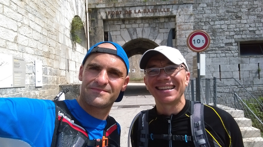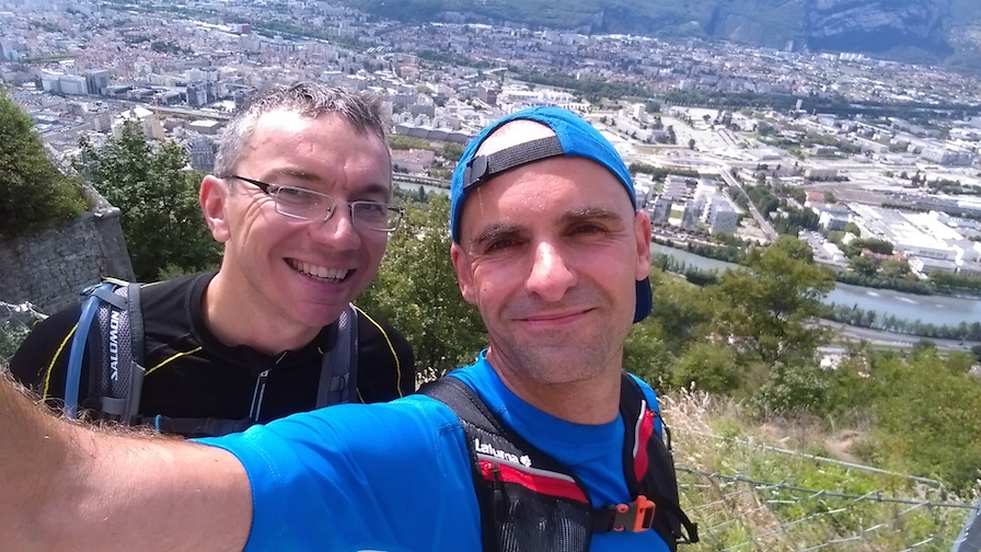 Derrière, il nous reste 2 bosses pour rejoindre le centre ville avec la montée au fort du Saint Eynard (qui se fera difficilement vers 7000m/h) que l’on découvre dans une jolie brume qui contraste avec le ciel bleu du début de matinée.