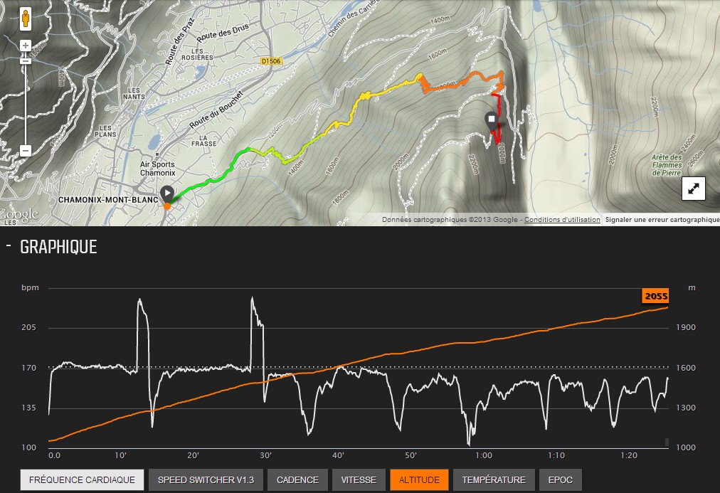 J’arrive en « haut » en 1h25, bien après les flèches de la Runnosphère, mais c’était très sympa ! La descente se fera (malheureusement) en train, mais c’était aussi pour pouvoir boucler le planning d’une journée assez chargée avec une après-midi très intéressante sur les échanges sur l’entrainement avec Fabien, les analyses possibles avec movescount et les façons d’utiliser son Ambit. Je reviendrai sur ce sujet dans un autre article. Mais ce sera plus un « cas pratique » sur mon utilisation alors ne vous attendez pas à un test détaillé et comparatif avec la Garmin 910 ou Fénix… Pour ça le plus intéressant reste de lire les tests de terredetrail.fr et du coureurduchablais.com ![]()