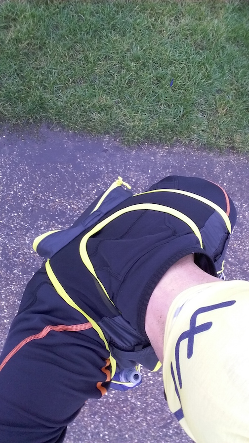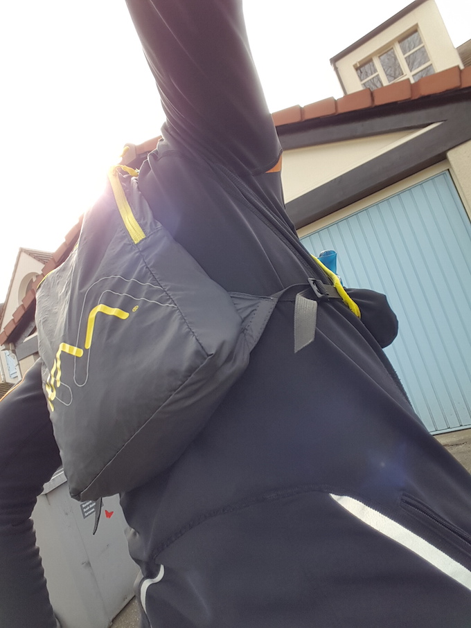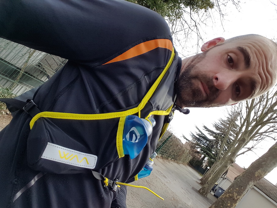 - Le sac à dos Waa Ultrabag pro 3L avec 2 flasques de 500ml. 137 grammes ! Pourquoi transporter plus ? Il faut juste que je trouve le temps de le customiser un poil pour le rendre encore plus efficace avec les flasques ;)