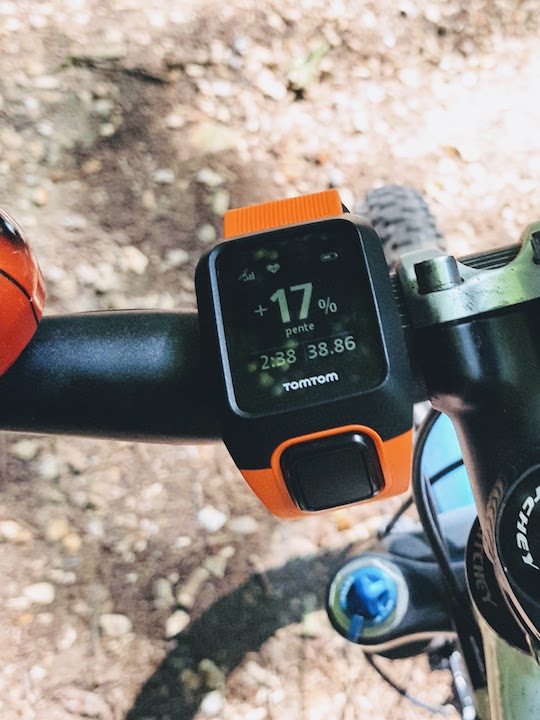 Bye-bye la ceinture cardio qui serre, brule le dos (j’ai testé ; maintenant je mets de la Nok…). Enfin sauf pour le vélo si vous voulez accrocher la montre sur la guidon (clic par ici pour le support officiel) afin de suivre une trace gps ou de consulter votre écran sans lâcher le cintre)